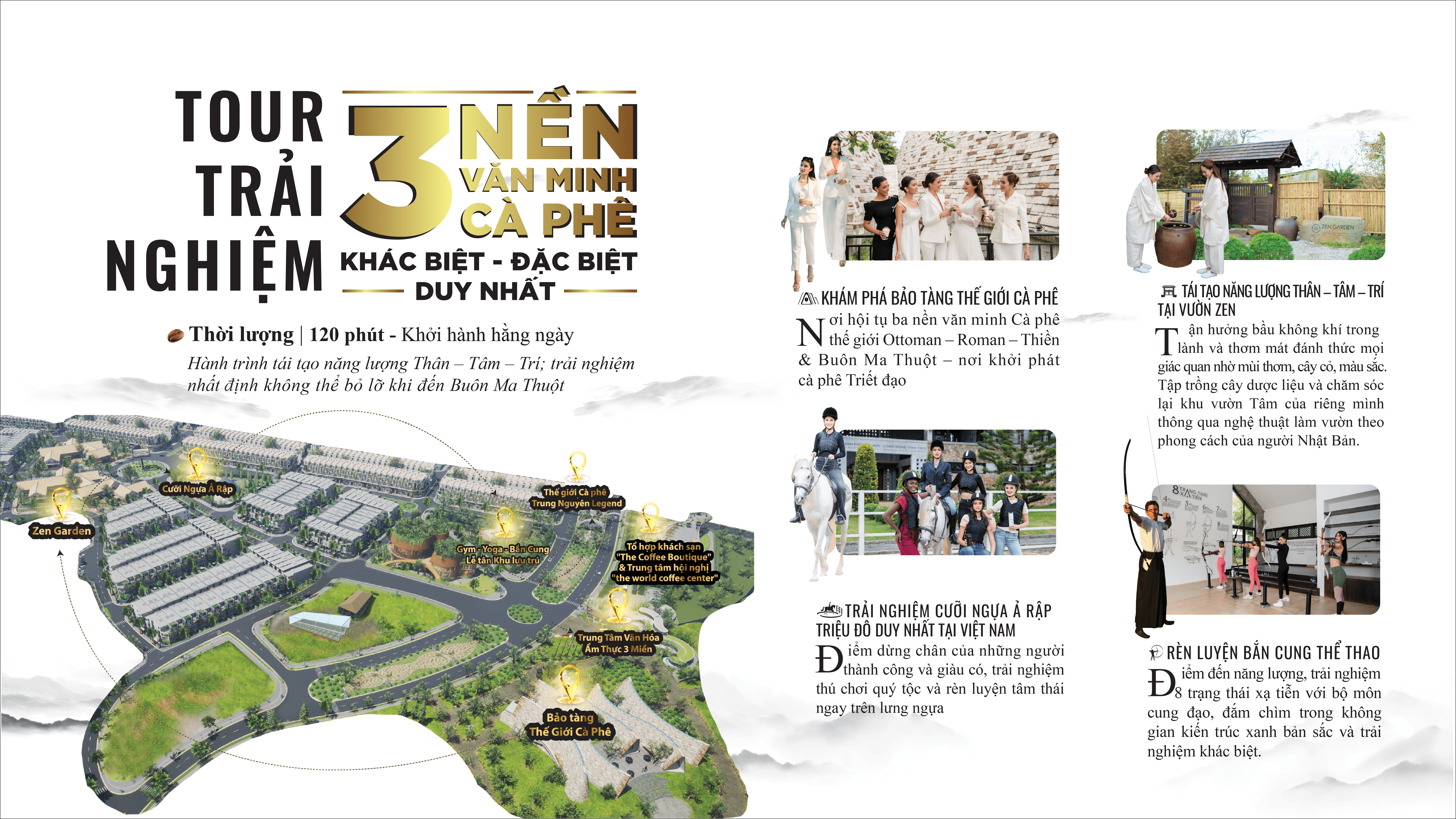 Với định vị trở thành điểm đến của cà phê thế giới, đưa Buôn Ma Thuột trở thành thủ phủ cà phê toàn cầu. Khi đến với Tour 3 văn minh cà phê tại Bảo tàng Thế giới Cà phê, du khách sẽ được trải nghiệm, tìm hiểu những tinh hoa của 3 Văn minh Cà phê: 𝗢𝘁𝘁𝗼𝗺𝗮𝗻 - 𝗧𝗵𝗶𝗲̂̀𝗻 - 𝗥𝗼𝗺𝗮𝗻 hội tụ tại Thành phố Cà phê cùng những chương trình hoàn toàn mới, Khác biệt - Đặc biệt - Duy nhất trên thế giới chỉ có tại đây :